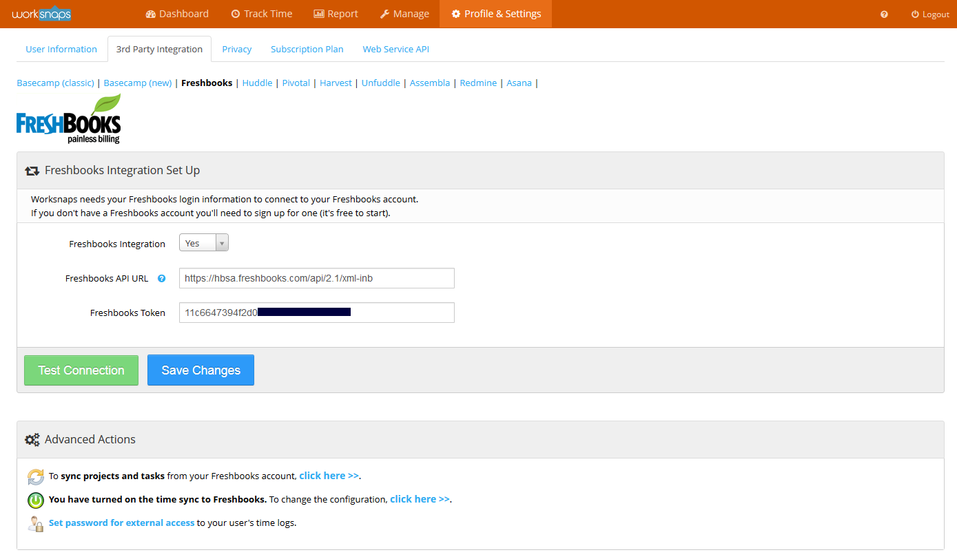 Worksnaps currently integrates with the following products: Asana, JIRA, Basecamp, Trello, Redmine, Teamwork, Huddle, Zapier, Podio, Freshbooks, Harvest, Unfuddle, PivotalTracker, Axosoft, Taiga, Worktile, Teambition, Tower.